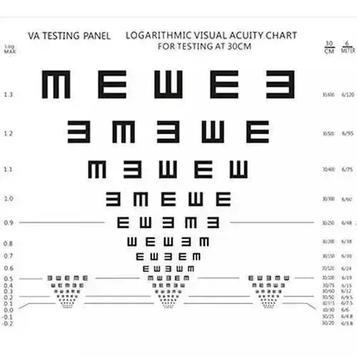 近視力多采用耶格視力表,同樣方法辨認(rèn)E字缺口方向,正常視力在30厘米處看清1.0即可。
