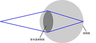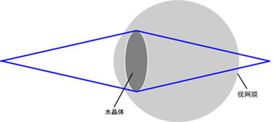 因此眼睛就象照相機(jī)的透鏡那樣,具有根據(jù)視距來(lái)使折射力(使光線折射的能力)發(fā)生變化從而使焦點(diǎn)投射在視網(wǎng)膜上的功能。這就是眼睛的調(diào)節(jié)功能,是由眼組織中被稱(chēng)為“水晶體”的透鏡來(lái)完成的。在上圖的情況下,眼睛為了看清近物會(huì)使水晶體膨脹來(lái)得到更大的折射力,這樣的話就會(huì)如下圖所示,焦點(diǎn)就投射到了視網(wǎng)膜上。